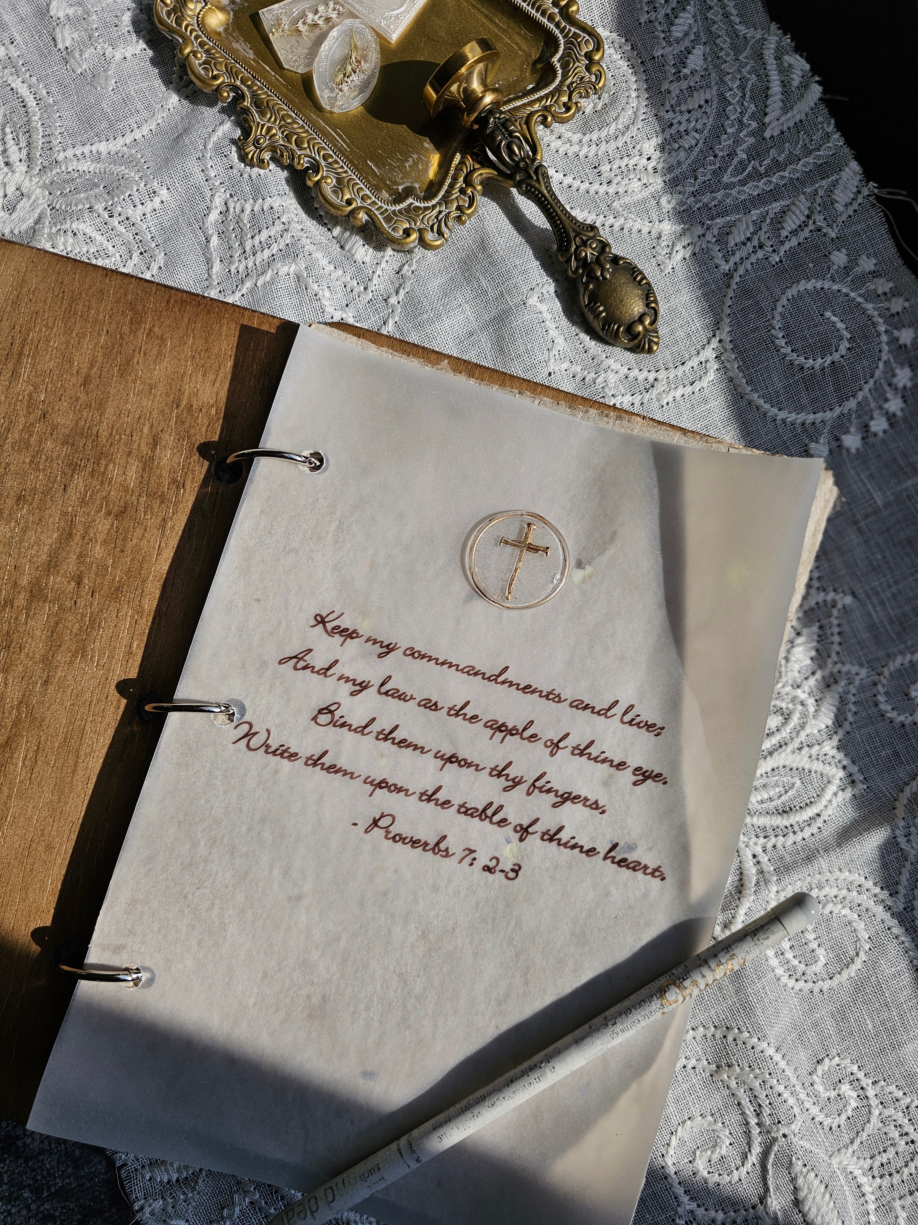 Purposeful tools designed to infuse meaning into your daily life. With each item thoughtfully crafted, they serve as reminders of faith, guiding you through moments of reflection and inspiration. Our stationery products empower you to live with intentionality and purpose.